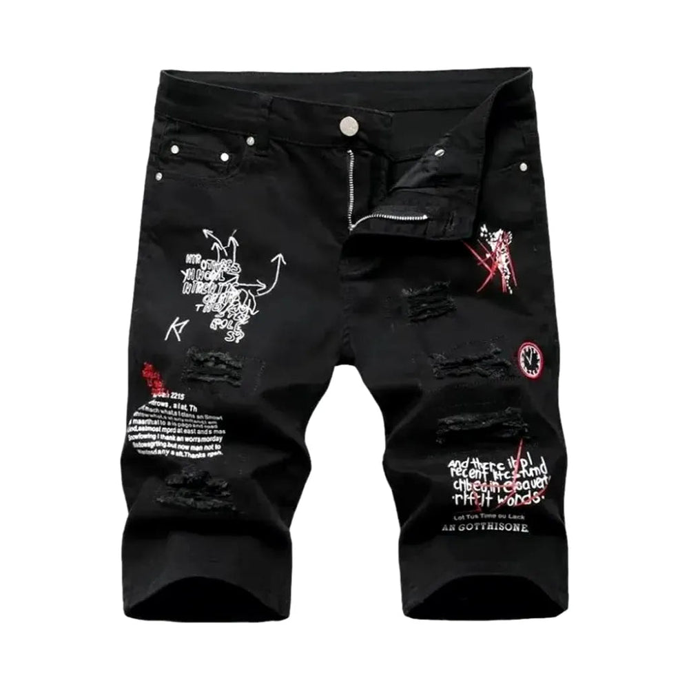 Baggy Camo Style Men's Denim Shorts - Black