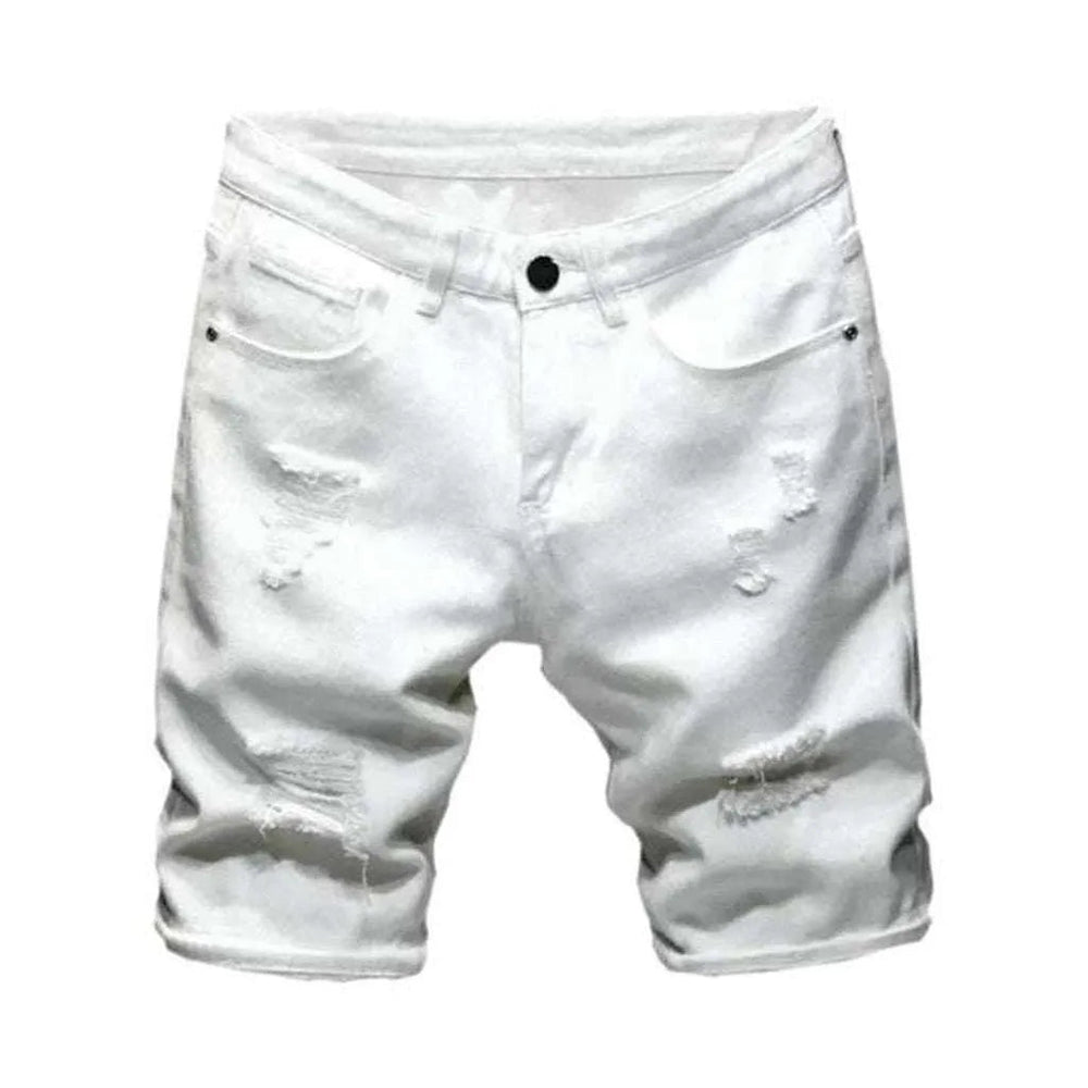 Baggy Camo Style Men's Denim Shorts - White