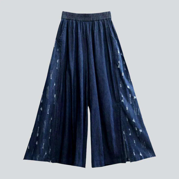 Make a bold statement in our 2023 Spring-Summer Collection elevated-waist ripped denim pants for women. With its dark wash, small flower embroidery, and rubber closure, this street-trend split-skirt will ensure you stand out with its fashionable and timeless look.