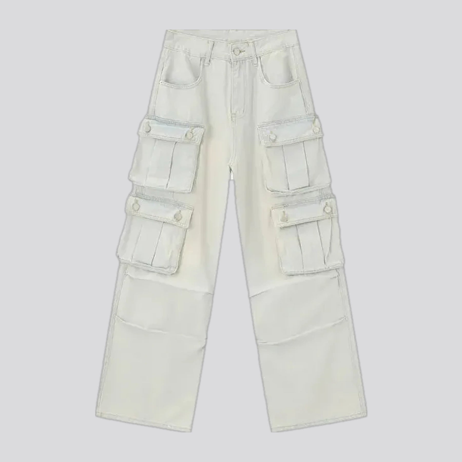 Mid-rise Lightened Cargo Men's Jeans - White