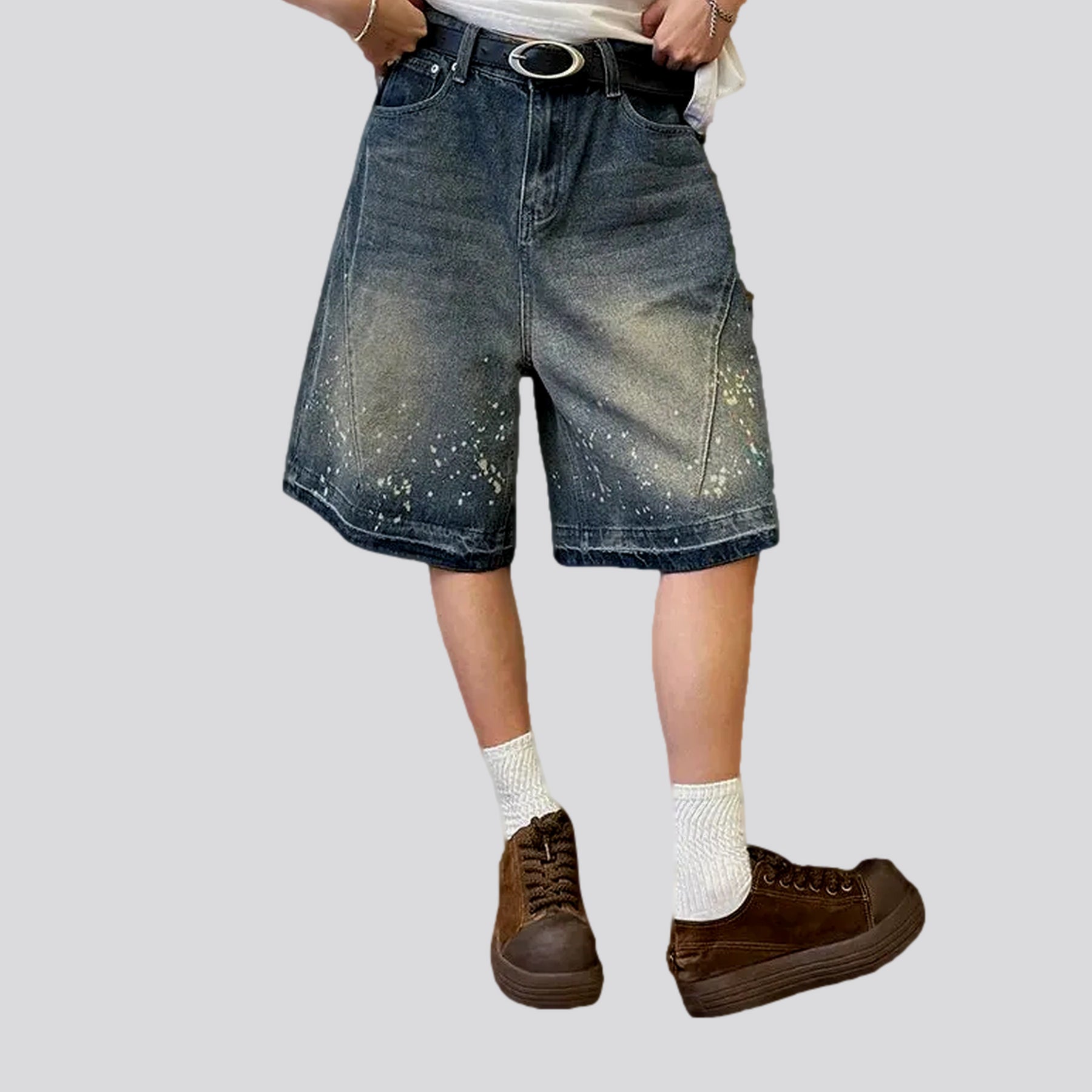 Retro style paint baggy denim shorts for men